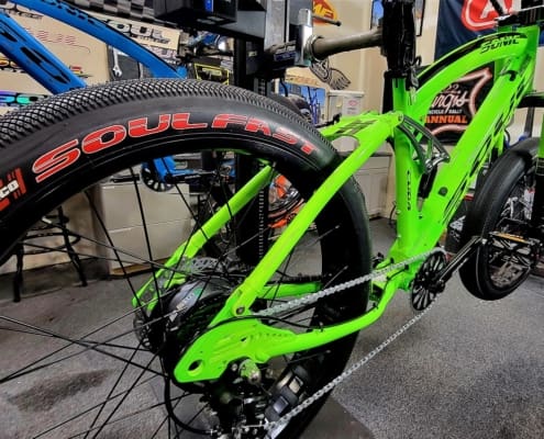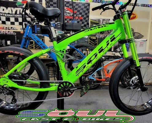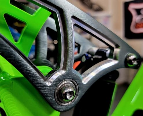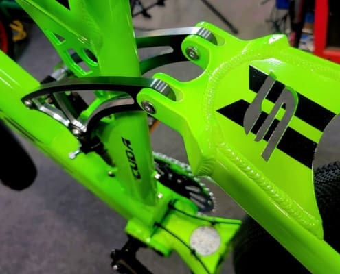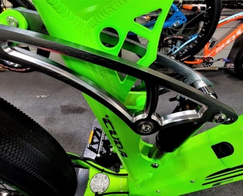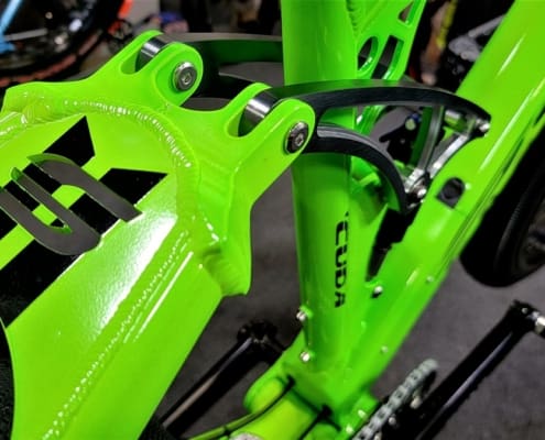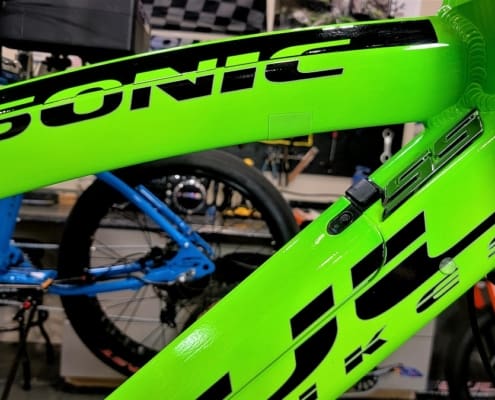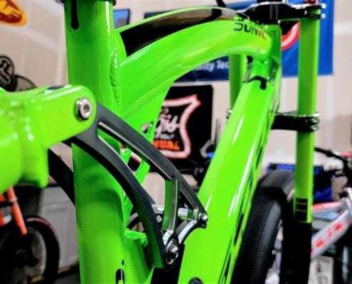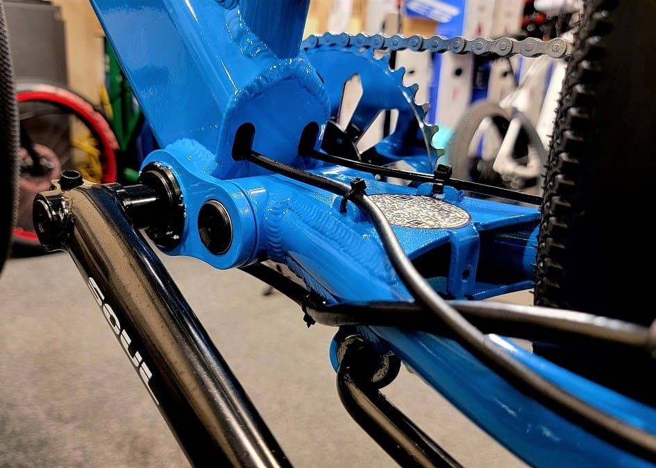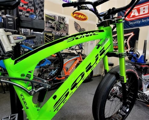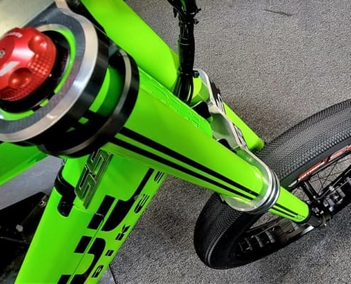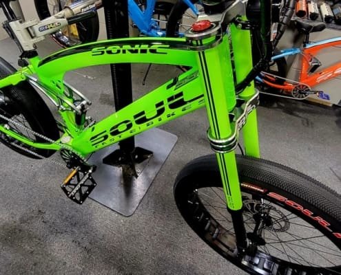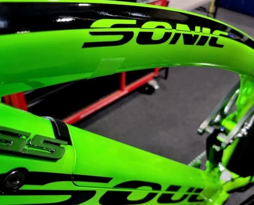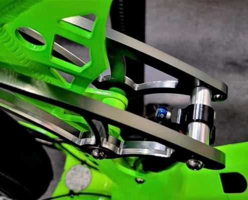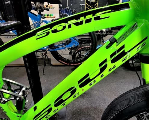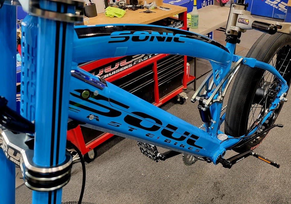 HERE IT SOUL FANS. OUR LEGENDARY SONIC FRAME GOES SUSPENSION WITH A FULLY ADJUSTABLE REBOUND AND LOCKOUT FRONT AND REAR SHOCKS