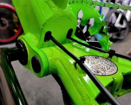 Stainless Steel, 14 Gauge Front, 12 Gauge Black with Chromed Brass Spoke Nipples