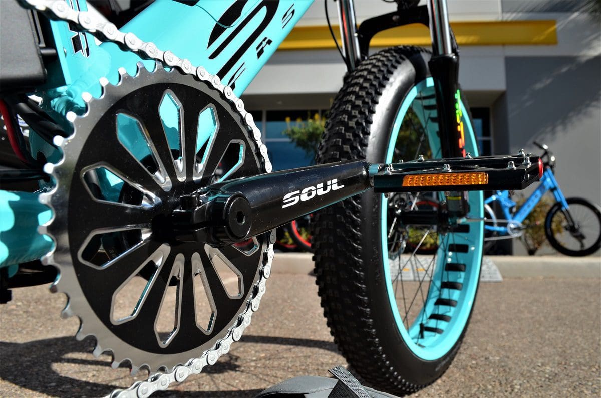- INCLUDED PRO SS PACKAGE – HYDRAULIC BRAKES ~ COLOR DISPLAY ~ SOUL FAST SEALED BILLET ALUM PEDALS – HIGH POWER INTERGRADED HEAD LIGHT – 4130 SOUL SIGNATURE CRANKS – SEALED BOTTOM BRACKET – KMC Z CHAIN – LOCK ON GRIPS – SS BADGING – BILLET 31.8MM MTB STEM – ALUM BMX BARS
