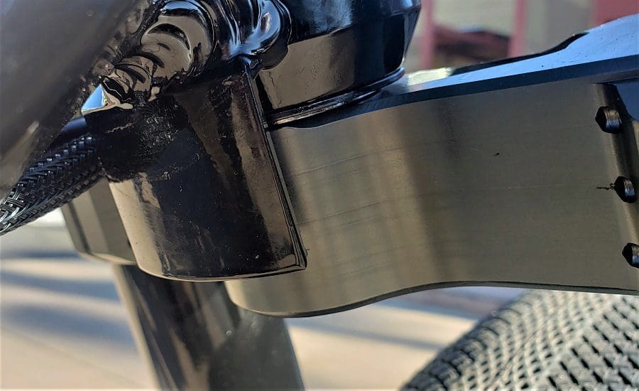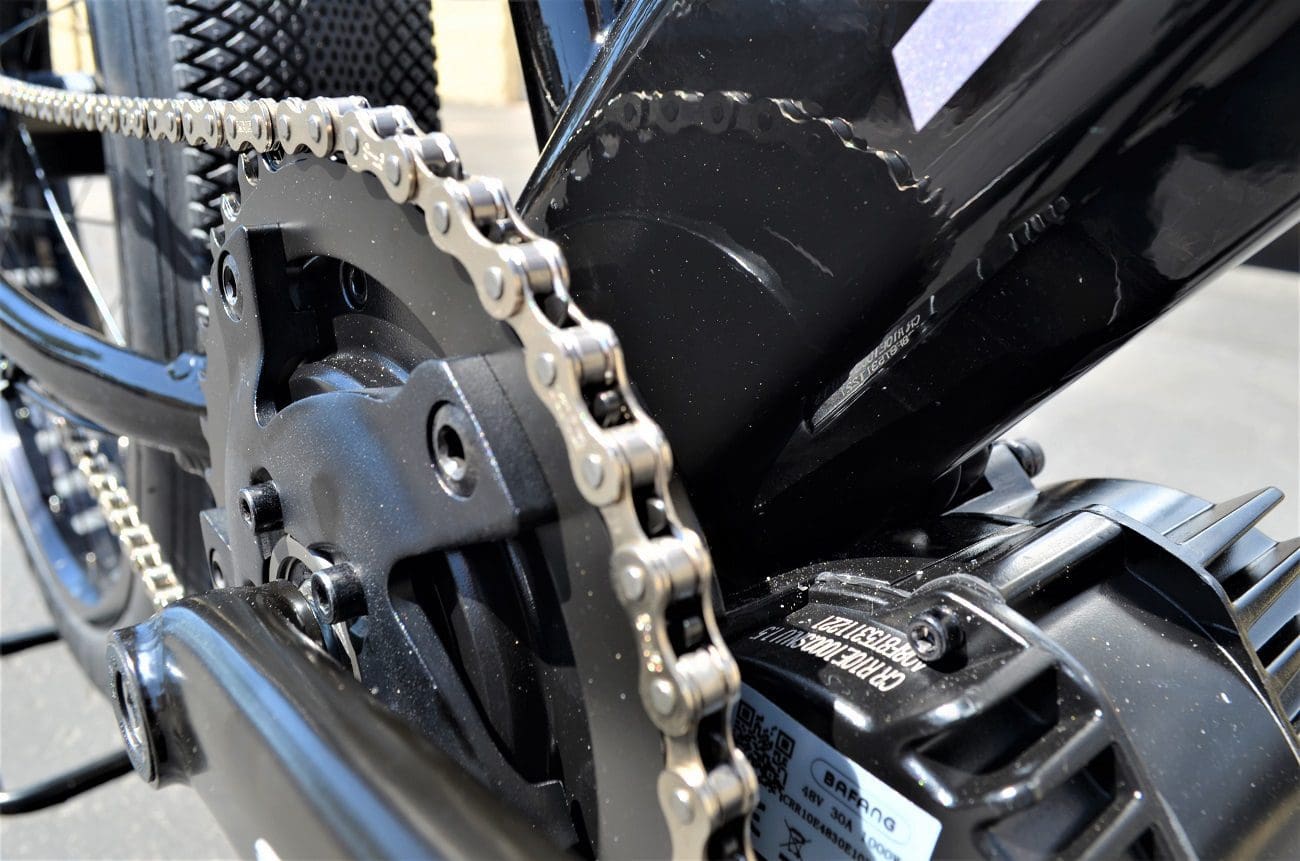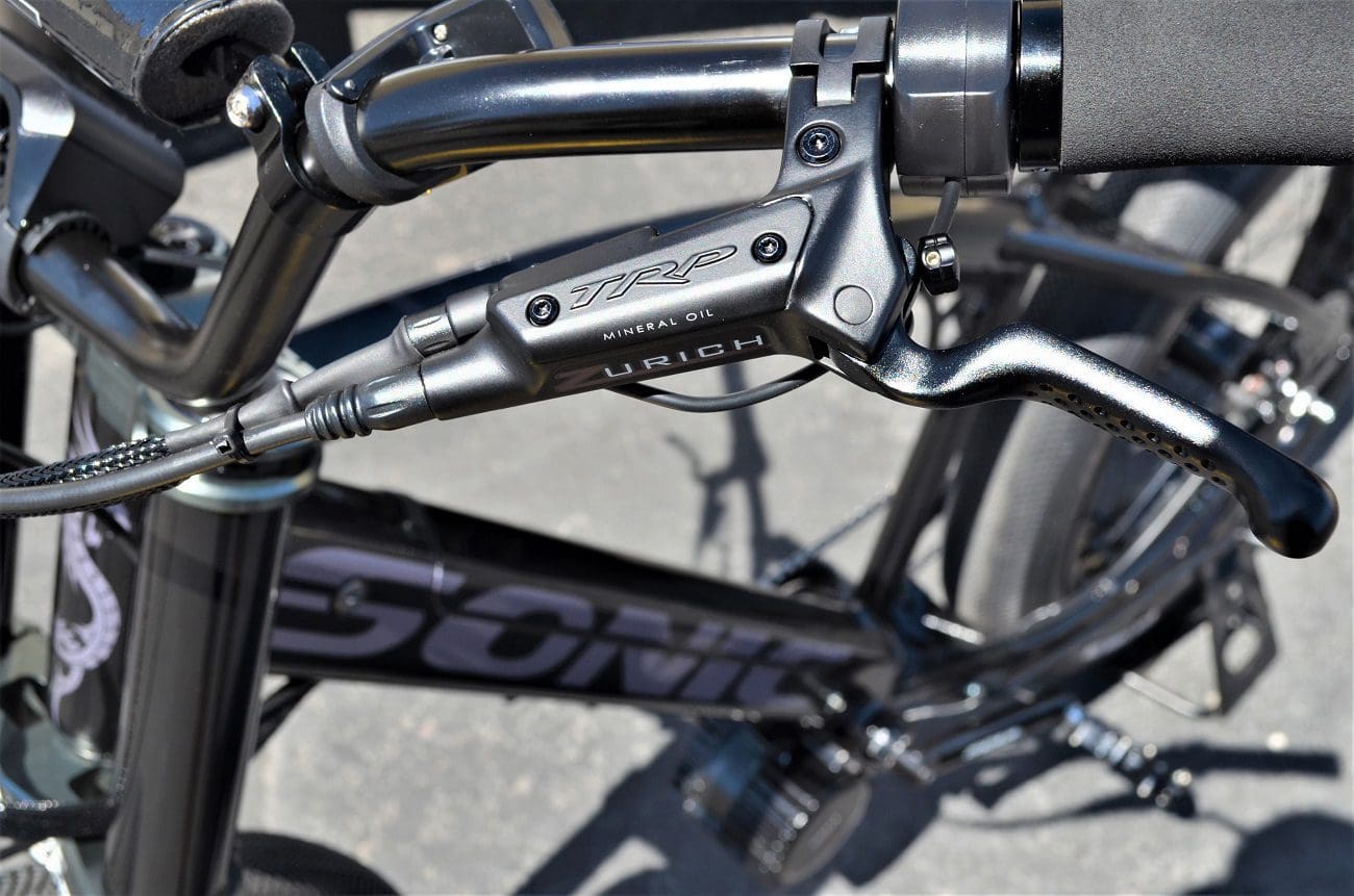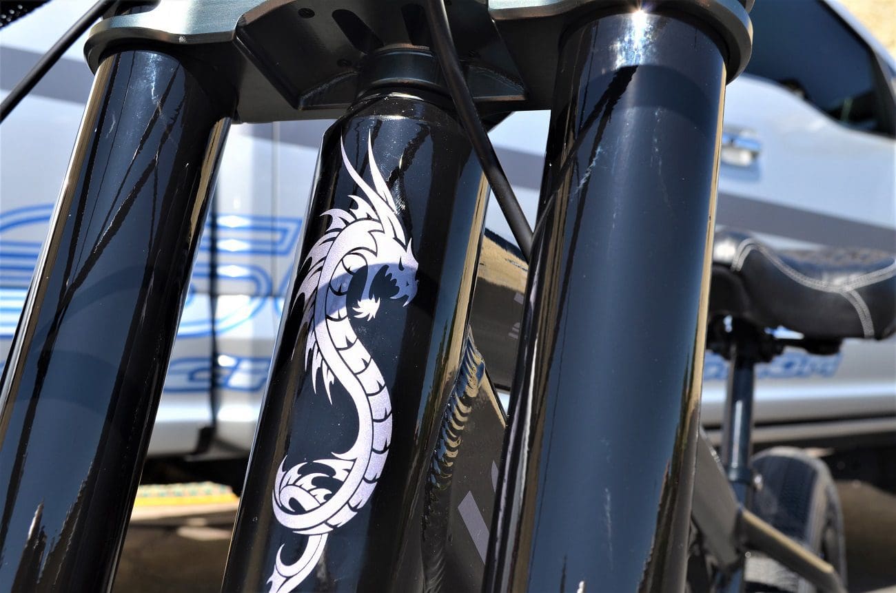 From our signature CNC billet triple clamps with massive in your face monster fork. To the impressive 1500 peak watts from Bafangs BBSHD 03 matched by supercar stopping power from TRP 4 piston downhill brakes sporting the industry’s only 225mm front rotors. The unique oversize TRP calipers have cooling fins to keep the heat down and were only offered aftermarket until now.