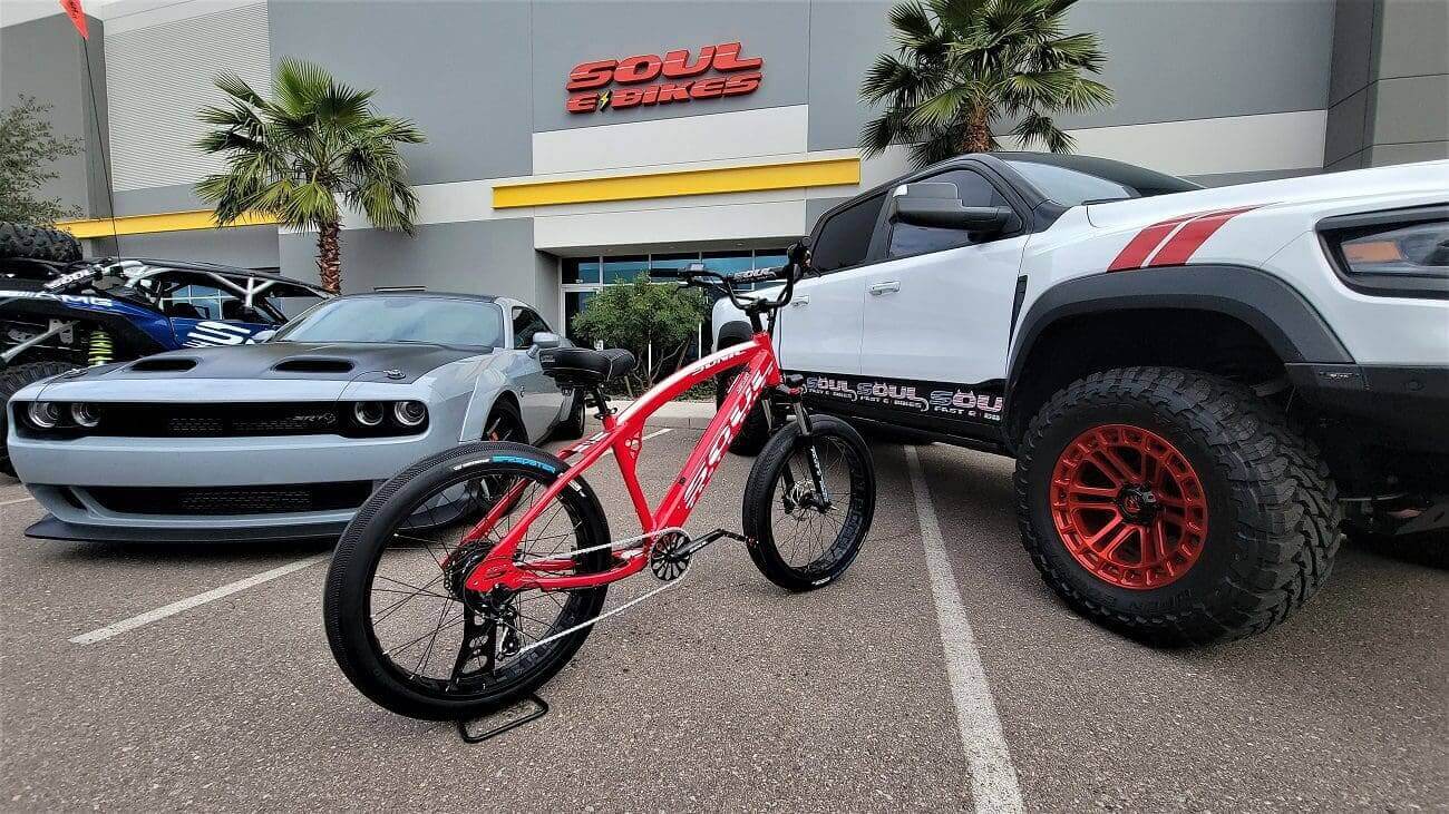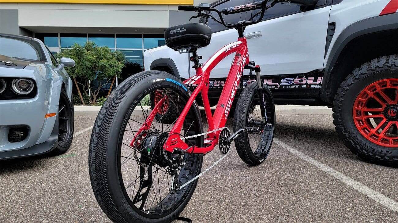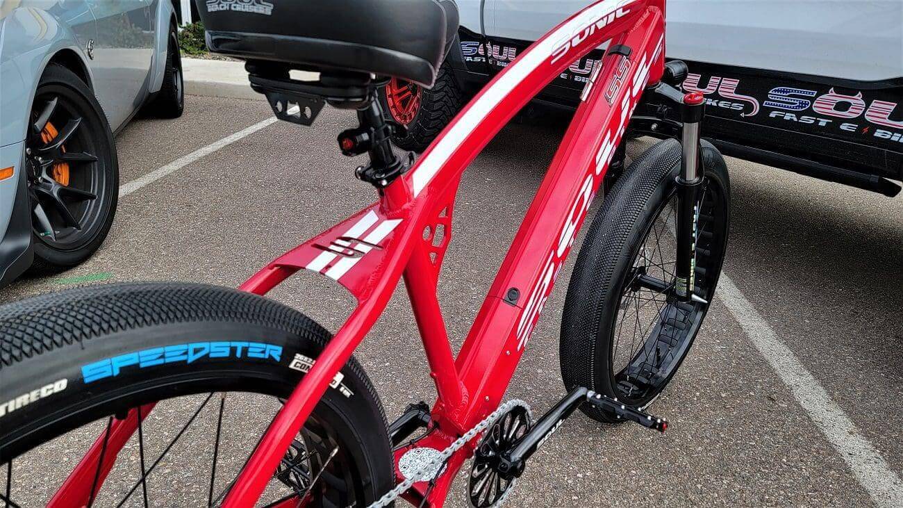 - INCLUDED PRO SS PACKAGE – HYDRAULIC BRAKES ~ COLOR DISPLAY ~ SOUL FAST SEALED BILLET ALUM PEDALS – HIGH POWER INTERGRADED HEAD LIGHT – 4130 SOUL SIGNATURE CRANKS – SEALED BOTTOM BRACKET – KMC Z CHAIN – LOCK ON GRIPS – SS BADGING – BILLET 31.8MM MTB STEM – ALUM BMX BARS