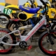6061 T-6 Aluminum Frame & Threadless Fork – Disc brakes – 7 speeds – alum rims – alum cranks – off road tires – BMX bars.