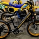 6061 T-6 Aluminum Frame & Threadless Fork – Disc brakes – 7 speeds – alum rims – alum cranks – off road tires – BMX bars.